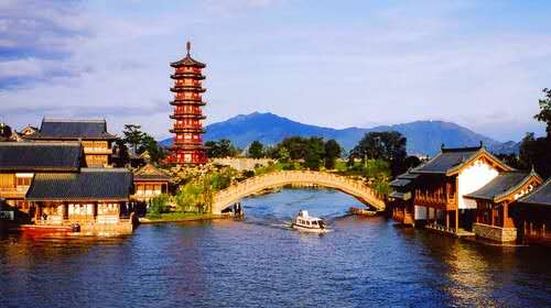 山環(huán)水繞的木龍湖,整個(gè)景區(qū)周邊自然景觀優(yōu)美,不僅有得天獨(dú)厚的漓江、疊彩山優(yōu)美的自然生態(tài)環(huán)境,還有歷史久遠(yuǎn)的古宋城等眾多歷史文化遺跡,歷史文化遺跡豐富。所以,在以宋城歷史文化主題公園為主的木龍湖景區(qū)總體設(shè)計(jì)方案時(shí),通過對(duì)現(xiàn)狀環(huán)境、歷史文化背景做全方位深入調(diào)分析和在進(jìn)行多次學(xué)習(xí)考察的基礎(chǔ)上,聽取了各方意見,不斷完善、修改、深化設(shè)計(jì)方案,確定木龍湖景區(qū)在加強(qiáng)對(duì)歷史文化遺跡和自然生態(tài)環(huán)境保護(hù)的基礎(chǔ)上,版權(quán)所有山東聊城聊之旅國(guó)際旅行社有限公司,轉(zhuǎn)載必究!有限度地開發(fā)利用風(fēng)景文化旅游資源,達(dá)到人與自然的共生的基調(diào)。木龍湖景區(qū)總體布局以中國(guó)傳統(tǒng)造園思想為指導(dǎo),結(jié)合建筑范圍內(nèi)地形地址條件,以史料、《清明上河圖》等宋畫為基本素材,就形成了宋代建筑特征。木龍湖景區(qū)建設(shè)突出了自然山水與歷史文化相融合的特點(diǎn),在木龍湖北側(cè)依托宋代東鎮(zhèn)門、宋城墻遺址等歷史人文景觀,建設(shè)包括宋街、半邊街、古宋城、木龍塔、木龍夜泊、淺橋魚影、聽荷軒等具有宋代建筑氣息的古建筑群落的景點(diǎn),木龍塔是以上海宋代的龍華塔為藍(lán)本建造的,高45米。在木龍湖南側(cè)與疊彩山之間建筑以觀賞林地、草地、溪流、瀑布為主的生態(tài)景觀帶。