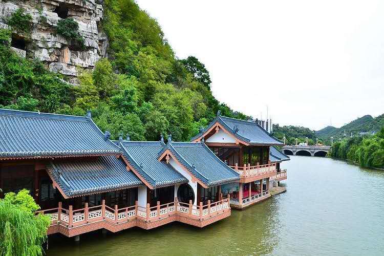 湖的上方有木龍洞,所以稱木龍湖。木龍湖景區(qū)位于桂林城北,東起漓江,西至中山北路,南靠疊彩山、北臨東鎮(zhèn)路,景區(qū)東西長(zhǎng)500余米,南北寬360余米,占地10余公頃,建筑部分面積一萬余平方米,其建筑為仿宋建筑群。