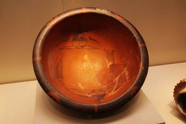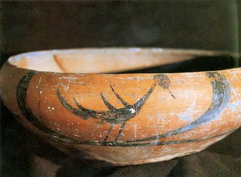 從半坡遺址中看到的大量絢麗多彩的陶器,表明這一時期的文化為彩陶文化。其繪畫作品有的豐富生動,有的神秘難測,有的則圖案化,多繪在盆、缽、罐、細頸壺上,繪畫作品多繪在小口器肩,腹和口部,直口器多繪在外壁或口緣外側,大口器多繪于器內(nèi)壁。多見黑彩,還有少量紅彩。