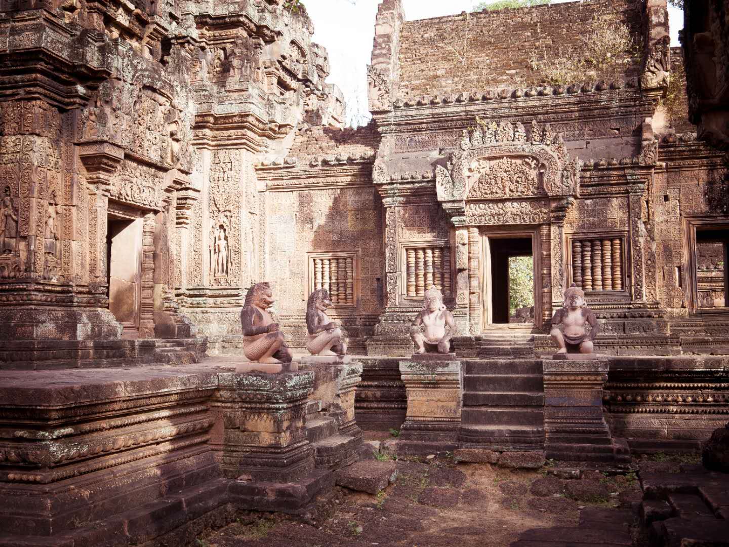 以下寺廟都離開(kāi)了吳哥中心地區(qū),但是只要給你的摩托司機(jī)多付幾美元(每天US$10),吳哥環(huán)城游就可以將女王宮和高布思濱(KbalSpean)包含進(jìn)去。如果再加幾塊錢(qián)(每天US$15),就有可能包含崩密列(BengMealea)了。普通的吳哥聯(lián)票只能進(jìn)入女王宮和高布思濱。