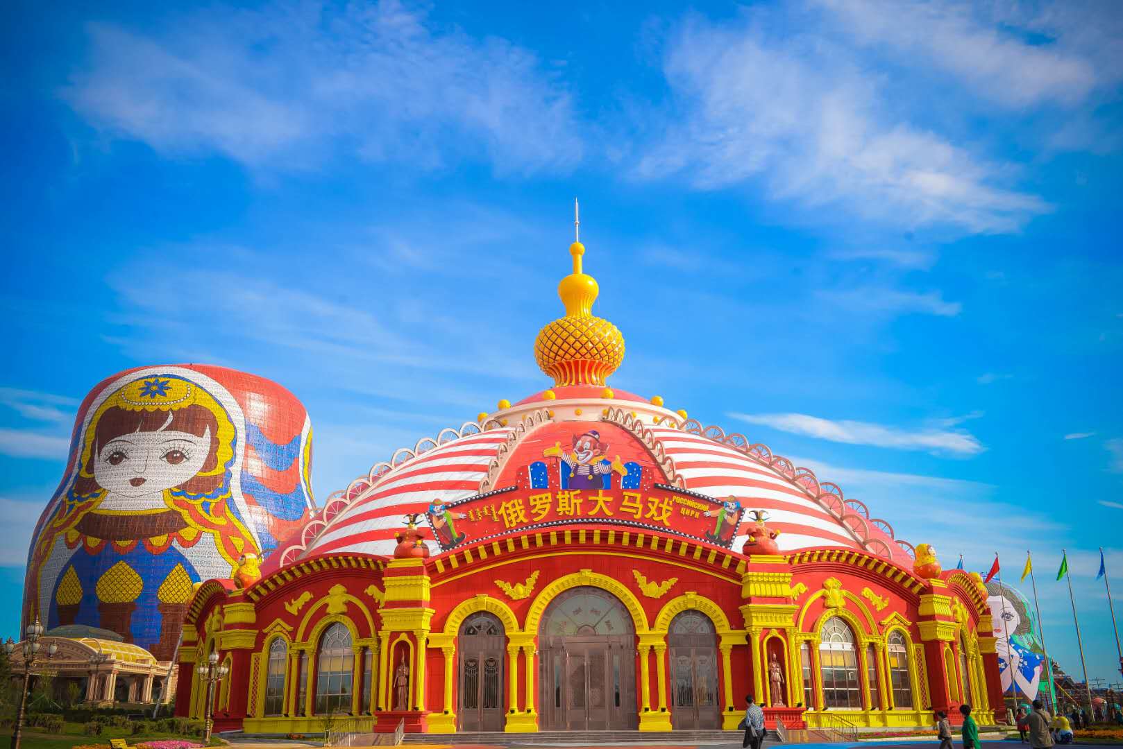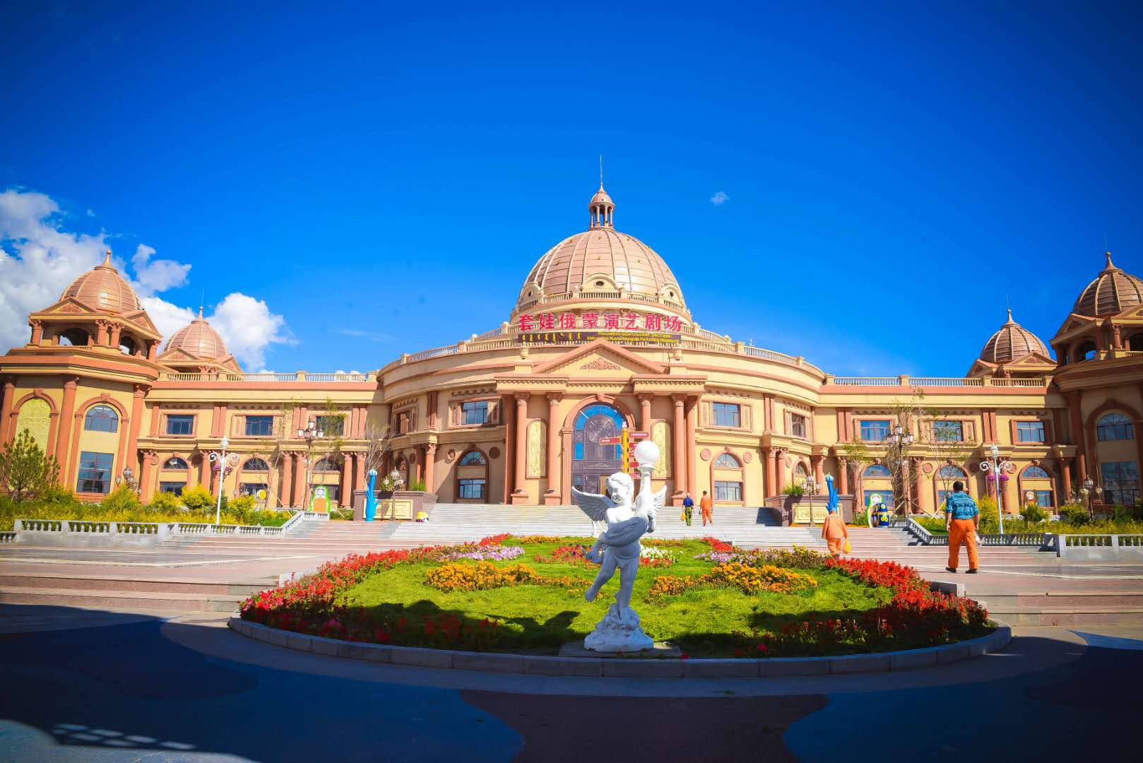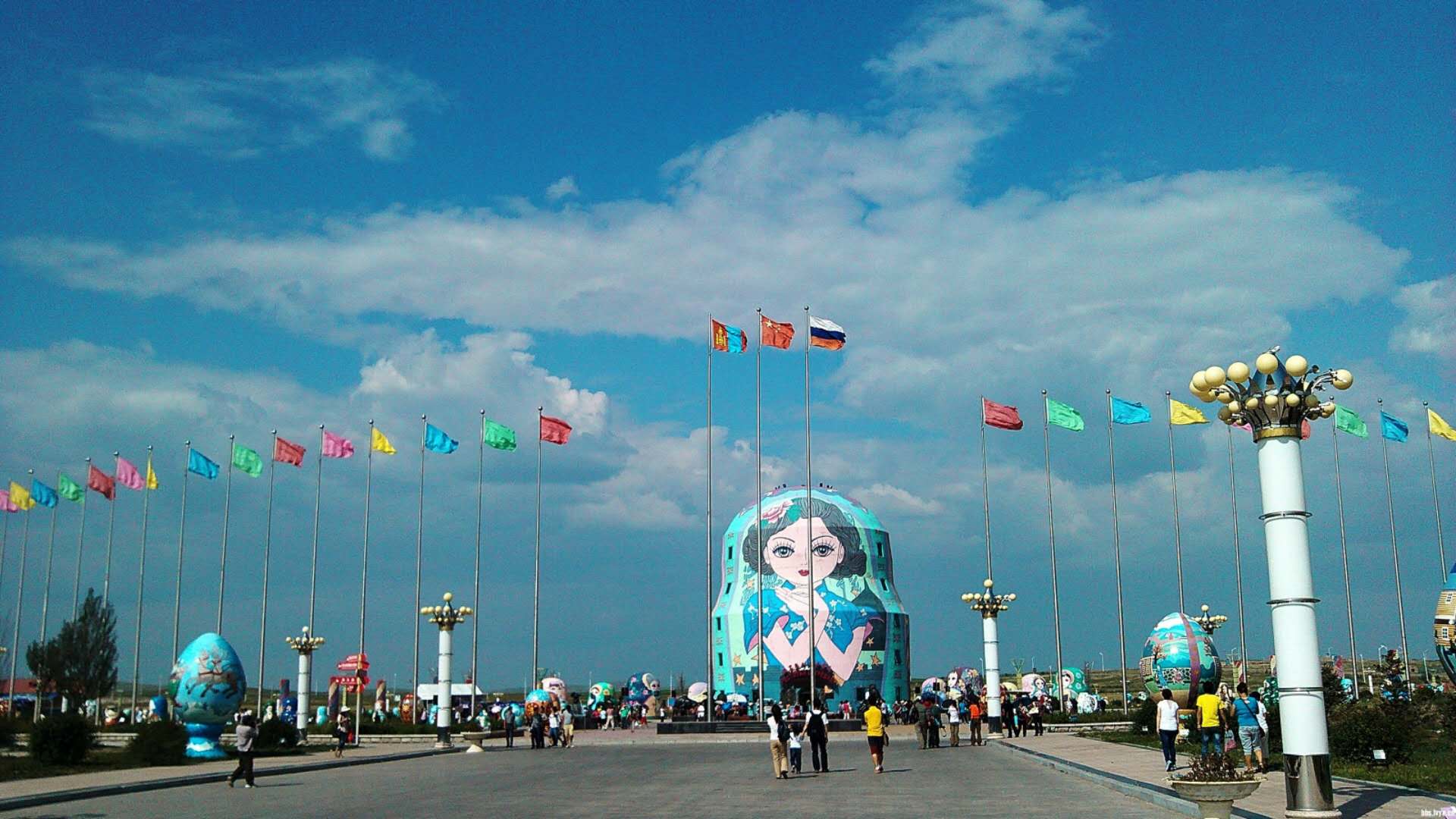 滿洲里俄羅斯套娃廣場是全國唯一的以俄羅斯傳統(tǒng)工藝品——套娃為主題的旅游休閑娛樂廣場,集中體現(xiàn)了滿洲里中俄蒙三國交界地域特色和中俄蒙三國風(fēng)情交融的特點。廣場規(guī)劃面積54萬平方米,主題廣場面積6萬平方米,主體建筑是一個高30米的大套娃。歐式旅游觀光婚禮宮位于內(nèi)蒙古呼倫貝爾市滿洲里市東山植物園內(nèi),建筑面積近20000平方米,東西長97米、主體寬32米、建筑高度37米,主塔樓高55米,大廳面積近3000平方米。