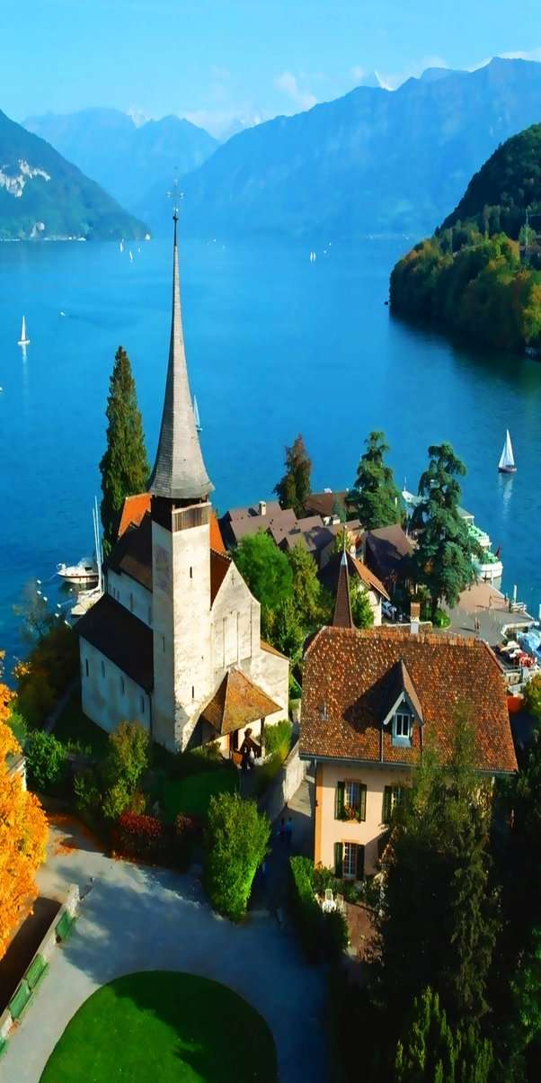 施皮茨鎮(zhèn)位于伯爾尼東南三十多公里處、圖恩湖南岸一水灣邊上,海拔628米,屬伯爾尼高原。這里碧水如鏡,雪峰環(huán)抱,空氣清新,是瑞士著名的休養(yǎng)和水上運(yùn)動(dòng)勝地。