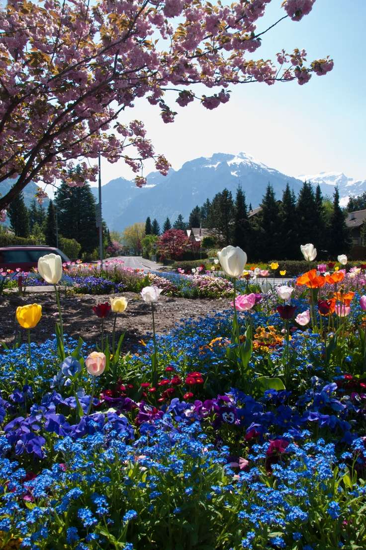 因特拉肯(INTEL‘LAKEN,即“湖間”之意)屬伯爾尼州,距離伯爾尼市約50公里,地處圖恩湖和布里茵茨湖之間,海拔只有568米,是瑞士著名的風(fēng)景區(qū)之一。這里群山環(huán)抱,綠色草場廣闊開敞,瑞士著名的少女峰終年白雪冠頂,倒映綠色湖中,遠(yuǎn)山近水,湖光瀲滟,置身此地,如在畫中。