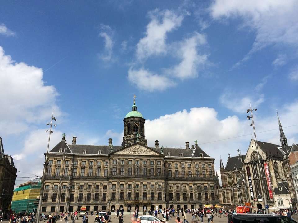 1648年興建時(shí)是作為阿姆斯特丹市政廳和法院使用,它曾是這座城市乃至整個(gè)共和國(guó)的政治和經(jīng)濟(jì)中心。至今為止已有360多年的歷史,當(dāng)年拿破侖曾在皇宮居住過(guò)?,F(xiàn)在則為王室迎賓館。它所在的地方——大壩,也曾經(jīng)是全城最重要的廣場(chǎng)和畫家喜愛(ài)的創(chuàng)作主題,直到今天它仍然充滿了活力。 在主三角墻的浮雕上,阿姆斯特丹被描繪為海洋的統(tǒng)治者。在市民大廳,整個(gè)世界都被置于阿姆斯特丹人的腳下。