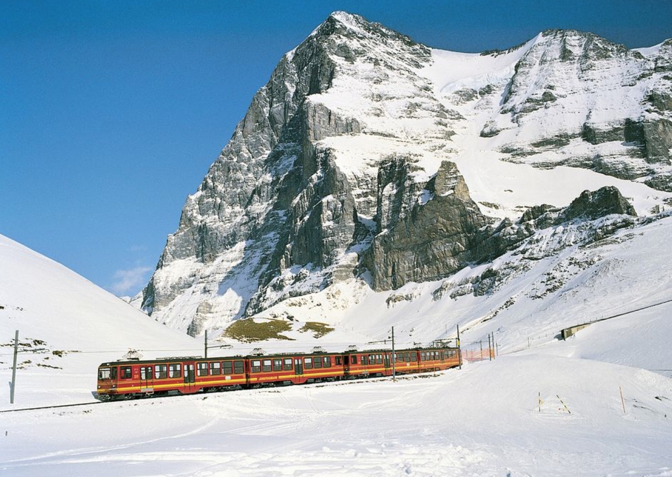 少女峰(Jungfrau)是瑞士的著名山峰,海拔4,158米(13,642英尺)。