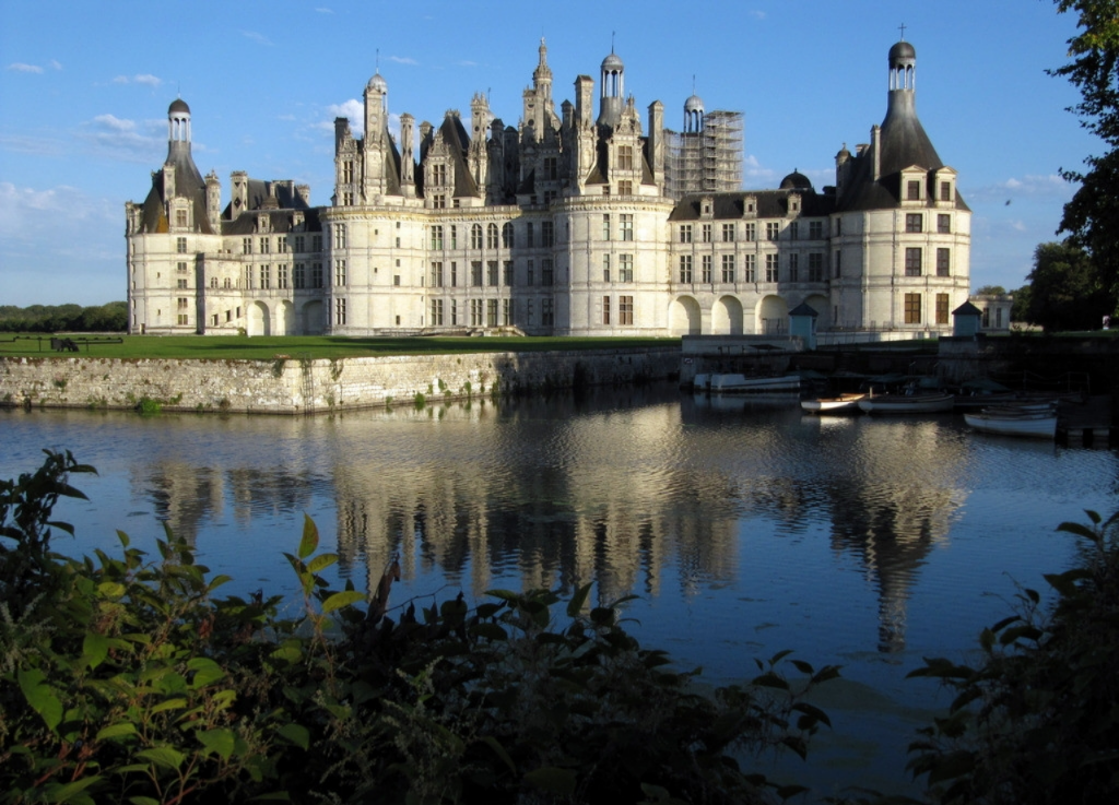1519年,一座宮殿出現(xiàn)在了索洛涅(Sologne)的濕地中央,由年輕的國王弗朗索瓦一世下令修建。香波城堡(Chateau de Chambord)并非為長久居住而設計,弗朗索瓦一世僅在這里住過幾周。這是一件真正的建筑杰作,國王樂于將其作為自己名留青史的權利象征,展示給其他君主和使臣們。盡管城堡并未在弗朗索瓦一世在位期間完工,但它是為數(shù)不多的基本保持著原初設計被留存至今的建筑之一。城堡的設計與裝飾方案圍繞著一根中軸線展開:很有可能是受到達·芬奇啟發(fā)的著名雙螺旋樓梯盤旋而上,直至城堡高層部分,聳立的煙囪和雕刻柱頭鱗次櫛比。