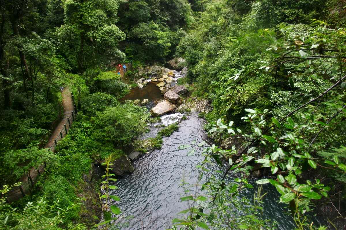 大珠小珠落玉潭。第三潭叫珍珠潭。瀑布從高空傾瀉而下,落差30余米,激起潭面水花四射,如同串串珍珠,在陽(yáng)光下閃灼耀眼,美麗無(wú)比。五龍?zhí)逗徒皙{面兩個(gè)景區(qū)組成,是以自然與人文景觀相結(jié)合的景區(qū)。五神河是龍?zhí)丁拔逄妒似佟钡脑慈?。溪水沖擊小井峽谷后,陡然跌落絕壁之下,又連續(xù)飛下四級(jí)斷崖,形成梯狀的五個(gè)氣勢(shì)磅礴的瀑布和深潭,這就是碧玉、金鎖、珍珠、飛鳳、仙女等五潭五瀑。