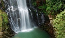 鎖龍?zhí)队址Q金鎖潭,金鎖潭的瀑布掩映在深邃的幽谷和杜鵲林中,水聲諳啞,碧水泱泱,汀芷競(jìng)秀,委婉動(dòng)人,好似未出閣的龍女鎖在深閨,羞于見(jiàn)人,特別耐人尋味。