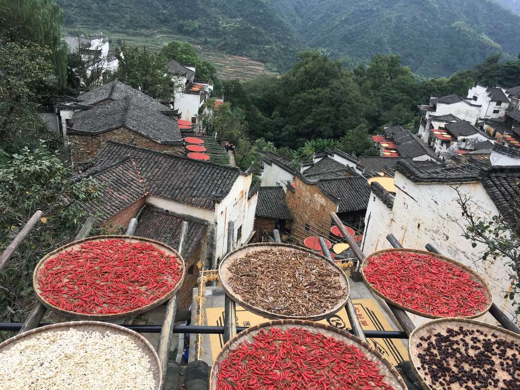 為慶祝首個“中國農(nóng)民豐收節(jié)”,篁嶺家家戶戶房前屋后晾曬的農(nóng)作物,將篁嶺古村裝扮。 古村內(nèi)有鄉(xiāng)村美食、農(nóng)耕體驗等系列活動,打麻糍、磨辣椒、做月餅,游客與農(nóng)民一起慶豐收、曬豐收、享豐收。
