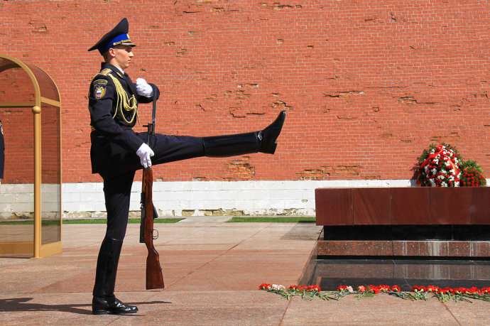 俄羅斯聯(lián)邦警衛(wèi)總局公共聯(lián)絡(luò)和新聞中心負(fù)責(zé)人謝爾蓋瀠維亞托夫透露,每天從早晨8點(diǎn)至晚上8點(diǎn)莫斯科克里姆林宮衛(wèi)戍部隊(duì)總統(tǒng)團(tuán)的軍人們在長明火旁站崗值班。每隔一個(gè)小時(shí)換一次崗。
