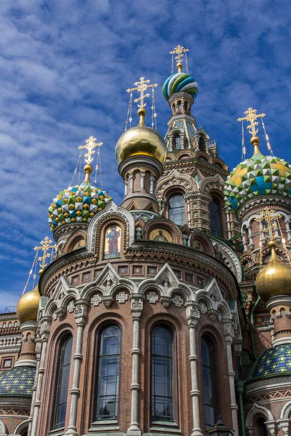 基督復(fù)活教堂上有五光十色的洋蔥頭頂,反映了俄國十六和十七世紀(jì)的典型的東正教教堂建筑風(fēng)格。教堂輪廓美麗,裝飾花花綠綠,與古老俄羅斯風(fēng)格與附近的古典式的建筑物成鮮明對比。版權(quán)所有山東聊城聊之旅國際旅行社有限公司,轉(zhuǎn)載必究!教堂高度約81米,寬闊的外形,采用了與莫斯科巴克洛夫教堂相同的構(gòu)造,與華西里教堂的區(qū)別在于鑲嵌復(fù)雜、顏色艷麗的影像圖案,用豐富的彩色圖案瓷磚、搪瓷青銅板裝飾面。基督復(fù)活教堂的建筑風(fēng)格迥異于圣彼得堡的其他建筑,該市主要是巴洛克和新古典主義風(fēng)格,但喋血大教堂特意設(shè)計(jì)成中世紀(jì)俄羅斯建筑,類似于17世紀(jì)的雅羅斯拉夫爾教堂和著名的莫斯科紅場的華西里·柏拉仁諾教堂。