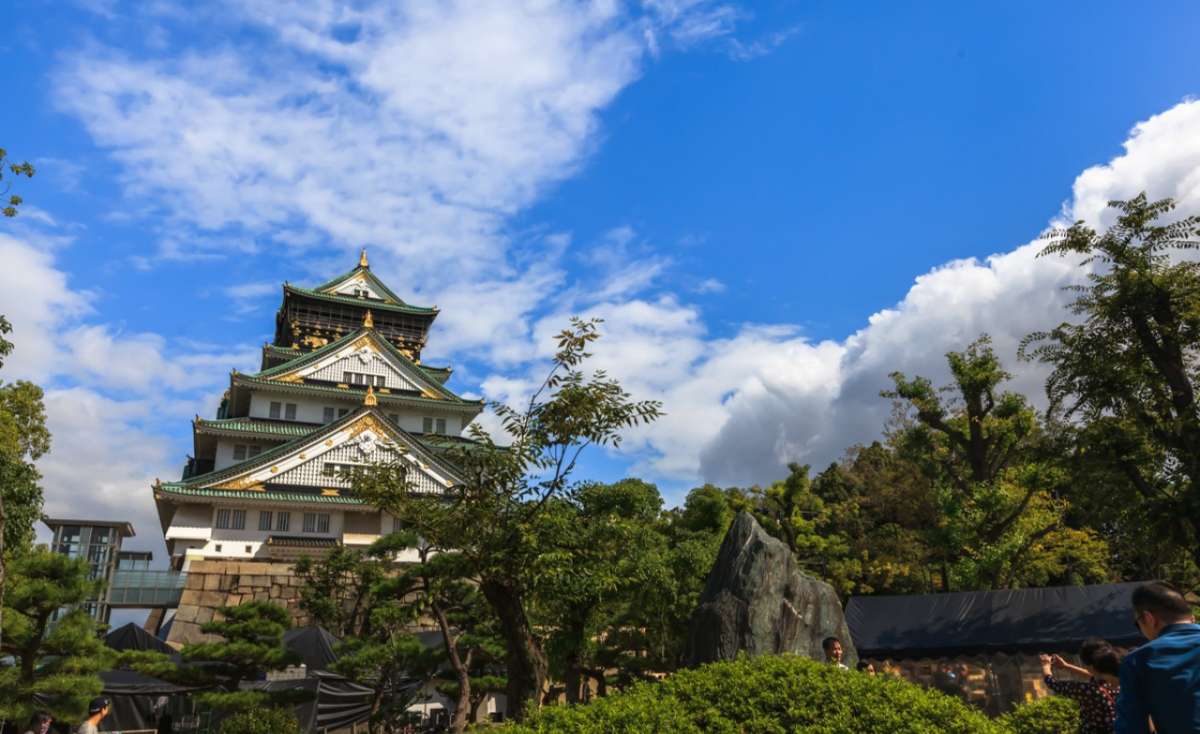 歷史悠久的大阪城,系豐臣秀吉于1586年所建,是由雄偉的石墻砌造而成,大阪城公園內(nèi)城中央聳立著大阪城的主體建筑天守閣,巍峨宏偉,鑲銅鍍金,十分壯觀。登上高五層八階的天守閣,可以瞭望整個(gè)大阪市。如今大阪城已被定為特別史跡。城內(nèi)的歷史博物館里保存有豐臣秀吉的木像、武器和美術(shù)作品等。在西之丸庭園,有一片寬闊的草原和曾遭祝融燒毀并再度重建的外堀、太平門等古跡,是散步休閑的好去處?,F(xiàn)存的大阪城公園于1931年由民間集資重建,為后人仿制豐臣秀吉時(shí)期的天守閣重制的,大阪城外觀5層,內(nèi)部8層,高54.8米,7層以下為資料館,8層為瞭望臺(tái),并且有一些紀(jì)念品出售。城墻四周建有護(hù)城河,附近有風(fēng)景秀麗的庭園和亭臺(tái)樓閣。漫步河邊,奇花異卉,滿目青翠,充滿詩(shī)情畫(huà)意。城內(nèi)櫻花門頗為著名,當(dāng)年大阪城遭遇火災(zāi),僅這一道全部用巨石砌成的櫻花門屹立無(wú)恙,成為僅存的遺跡。