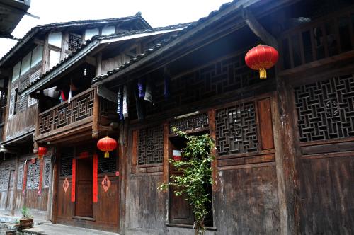 在龔灘,冉是大姓,冉家院子,已有三百年歷史。它四周封閉,進入其中,有置身徽派民居的感覺。但是與徽派民居不同,它一面是開放的,吊腳樓廊伸向街面,正房和廂房都是穿斗式結(jié)構(gòu),都是龔灘地道的建筑風格。