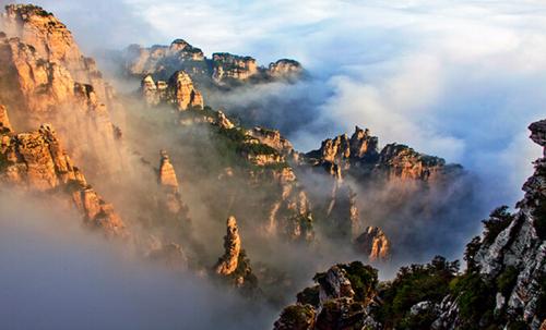 白石山位于太行山的最北端,最高峰佛光頂海拔2096米,登臨其頂可以遠(yuǎn)眺狼牙山和五臺山。白石山景觀多樣,集峰林、怪石、絕壁、峽谷、瀑布、森林、云海、佛光、長城、廟觀等景觀于一體,地貌奇特,結(jié)構(gòu)復(fù)雜,是中國古代“三十六洞天福地”之一。