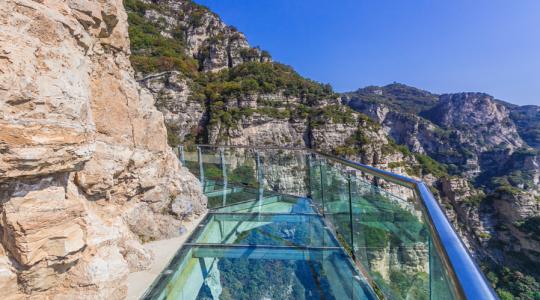 白石山玻璃棧道為混凝土框架結(jié)構(gòu),3.2厘米厚的雙層夾膠玻璃與不銹鋼龍骨架巧妙結(jié)合,每平方米承重達(dá)1000公斤,為游客游覽風(fēng)光帶來別樣體驗的同時保障安全。