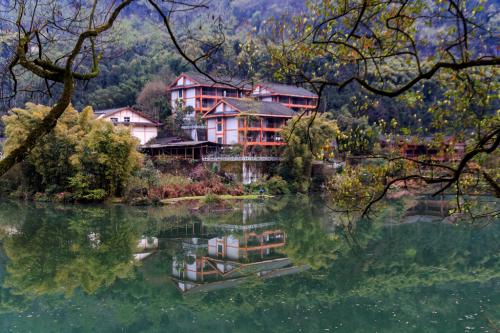 廣濟(jì)禪師根據(jù)寺周山水懷抱的天然風(fēng)貌,又見(jiàn)亭、臺(tái)、樓、閣與流水潺潺和諧相融,即取晉朝詩(shī)人左思《招隱詩(shī)》中的“何必絲與竹,山水有清音”中的“清音”二字,改寺名“清音閣”,后廣濟(jì)禪師圓寂在后牛心寺。在清音閣深夜聽(tīng)“清音”,是最好的黃金時(shí)段,早在1200多年前就大有人在了:唐代初年的高僧繼業(yè)三藏,從印度研經(jīng)歸來(lái),常信在大峨寺后的呼應(yīng)庵中。夜聽(tīng)清音,已成了他多的癖好,每每必至,往返六十多里,風(fēng)雨無(wú)阻;還留下了一段美好的傳說(shuō):在一個(gè)月明星衡的秋夜,他喜孜孜的傾聽(tīng)著“清音”返回庵中。在黑、白二水匯流處,高興地拾得一枚奇石,竟如人面,眉清目秀,活生生的呼之個(gè)人成分出,以為至寶,供奉前,見(jiàn)石之處,后名“寶現(xiàn)溪”。而今,雖然人面寶石不見(jiàn)了,但“寶現(xiàn)溪”這個(gè)地名是無(wú)法磨滅的,至今還泛起人們聽(tīng)清音的興頭。在清音閣,可看到山光水色,聞到花草芬芳,聽(tīng)到流泉清音,觸摸到亭臺(tái)碑石。它集中了視覺(jué)美、聽(tīng)覺(jué)美、嗅覺(jué)美,使游者獲得峨眉風(fēng)光總體的審美感受;古今游人多稱譽(yù)為“峨眉山第一風(fēng)景”。周邊景色優(yōu)美,玲瓏精巧的樓閣居高臨下。中部,是丹檐紅樓的接御、中心二亭、亭兩側(cè)各有一石橋、分跨在黑白二水之上,形如雙翼,故名雙飛橋。近景,則為匯合于牛心亭下的黑、白二水。右側(cè)黑水,源出九老洞下的黑龍?zhí)叮@洪椿坪而來(lái),水色如黛,又名黑龍江;左側(cè)白水,源出弓背山下的三岔河,繞萬(wàn)年寺而來(lái),水色泛白,又名白龍江。版權(quán)所有山東聊城聊之旅國(guó)際旅行社有限公司,轉(zhuǎn)載必究!兩江匯合沖擊著碧潭中狀如牛心的巨石,任其黑、白二水洶涌拍擊,仍巍然不動(dòng),組成獨(dú)具特色的寺廟、山水、園林環(huán)境?!拔煨缌印敝粍⒐獾芤睬擅畹貙⒍蛞皇爬椋骸半p橋兩虹影,萬(wàn)古一牛心”。這樣如詩(shī)如畫(huà)的“雙橋清音”是“峨眉山十景”之一;這里一年四季,無(wú)論晝夜,滿回蕩著水聲,這水聲單一而清晰,加上兩橋,故而譽(yù)為“雙橋清音”,成為峨眉十景之一。交通信息編輯從五顯崗?fù)\噲?chǎng)步行約30分鐘可到。地理位置編輯清音閣位于峨眉山風(fēng)景區(qū)的核心地段,左通洪椿坪、仙峰寺,右達(dá)白龍洞、萬(wàn)年寺,為上山朝拜、觀光必經(jīng)之地。