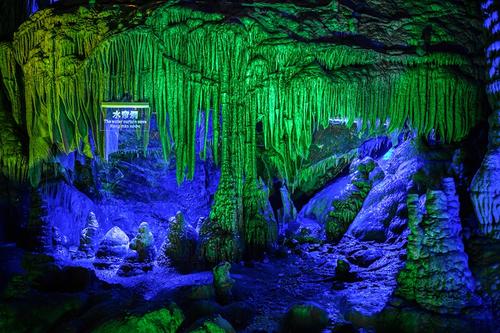 龍宮仙境”是一個(gè)鐘乳石正在不斷生長(zhǎng)發(fā)育著的溶洞,洞內(nèi)的滴水活動(dòng)非?;钴S且洞內(nèi)的鐘乳石非常密集,有很多分布在游步道兩側(cè)。由隧道、前廳、金龍迎賓廳、龍宮寶藏廳、龍宮仙境廳、龍母后宮和仙人遺址等七部份組成。