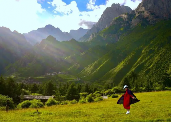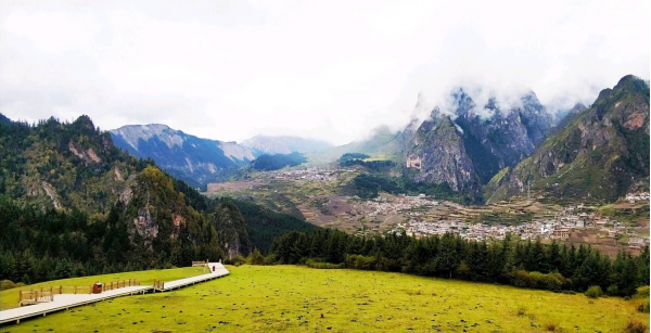 在群山環(huán)繞之中,有一處大片的草坪,平整的木棧道,那就是仙女灘,在這里可以一覽無余的飽覽整個扎尕那山峰的全景。