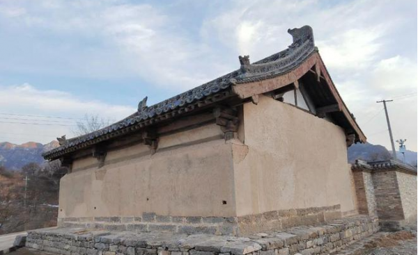 正殿 正殿建于石質(zhì)臺(tái)基上,面闊三間、進(jìn)深四椽,梁架為三椽栿對(duì)前搭牽通檐用三柱,單檐懸山頂,灰板瓦屋面。柱頭直接置櫨斗不設(shè)普柏枋,闌額至角柱不出頭,柱頭斗栱四鋪?zhàn)鲉蜗掳?,無(wú)補(bǔ)間鋪?zhàn)鳎顑?nèi)存清代工筆淡彩壁畫(huà)53.7平方米,內(nèi)容為西游記人物和四大天王等。殿東側(cè)山墻上嵌石碣1方,記載清光緒二年(1876)重修情況。