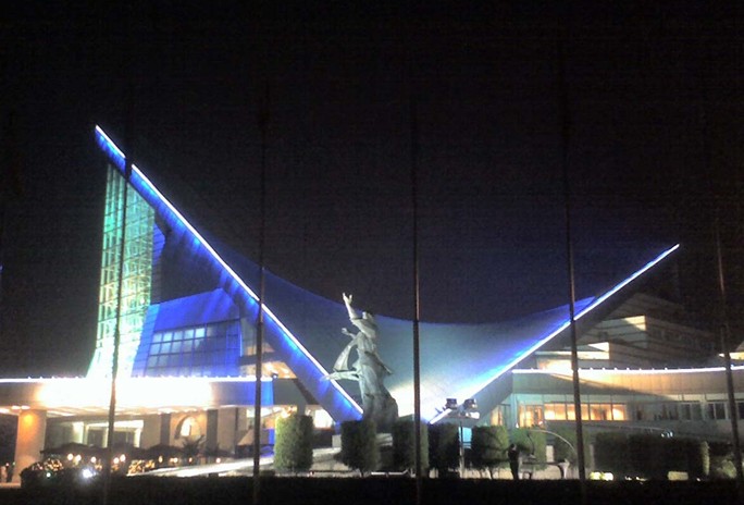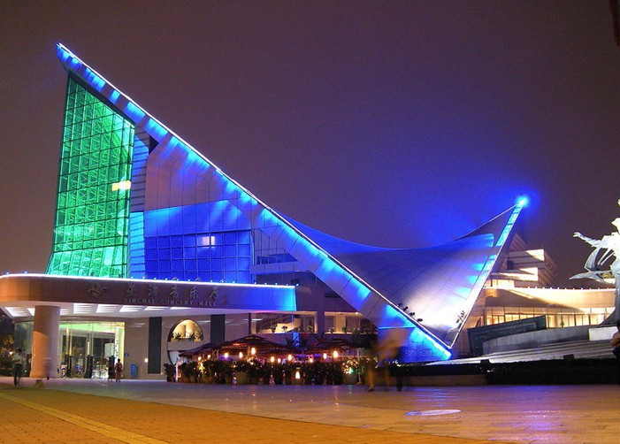 星海音樂廳位于廣州二沙島,造型奇特的外觀,富于現(xiàn)代感,尤如江邊欲飛的一只天鵝,與藍(lán)天碧水渾然一體,形成一道瑰麗的風(fēng)景線。這座以人民音樂家冼星海的名字命名的音樂廳,占地1.4萬平方米,建筑面積1. 8萬平方米,設(shè)有1500座位的交響樂演奏大廳、460座位的室內(nèi)樂演奏廳,100 座位的視聽欣賞室,和4800平方米的音樂文化廣場(chǎng)。整體建筑為雙曲拋物面鋼筋混凝土殼體,室內(nèi)不吊天花板,做到建筑空間與聲學(xué)空間融為一體。星海音樂廳總投資達(dá)2.5億元,是我國目前規(guī)模最大,設(shè)備最先進(jìn),功能完備,具有國際水平的音樂廳。