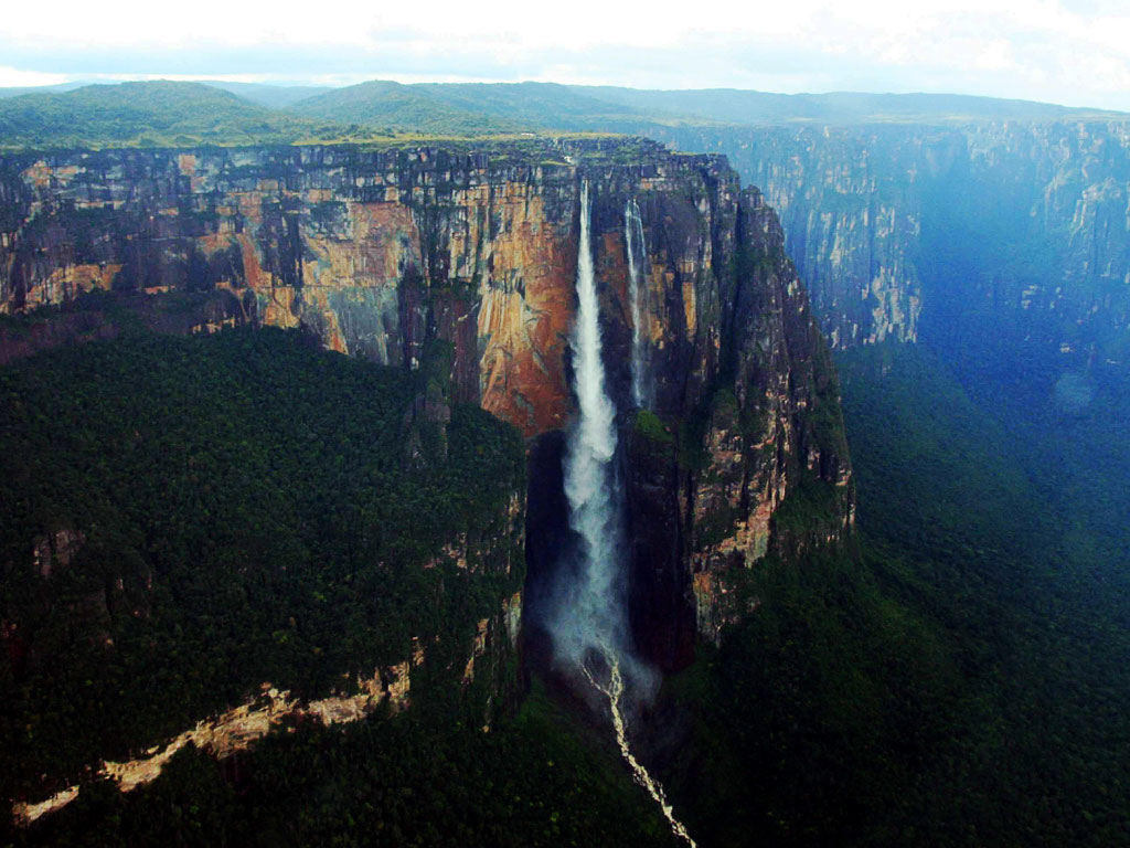 安赫爾瀑布(Angel Falls,通常依字義譯為天使瀑布,但不合語源),又名丘倫梅魯瀑布,世界十二大瀑布之一。當?shù)氐挠〉诎踩巳∶麨?ldquo;出龍”。位于南美洲委內(nèi)瑞拉玻利瓦爾州的圭亞那高原,卡羅尼河支流丘倫河上。藏身于的委內(nèi)瑞拉與圭亞那的高原密林深處。安赫爾瀑布是世界上落差最大的瀑布,丘倫河水從平頂高原奧揚特普伊山(Auyan-tepui)的陡壁直瀉而下,幾乎未觸及陡崖,落差達979.6米,大約是尼亞加拉瀑布高度的18倍。瀑布分為兩級,先瀉下807米,落在一個巖架上,然后再跌落172米,落在山腳下一個寬152米的大水池內(nèi)。這個地區(qū)的熱帶雨林非常茂密,不可能步行抵達瀑布的底部。雨季時,河流因多雨而變深,人們可以乘船進入。在一年的其他時間里,只能從空中觀賞瀑布。