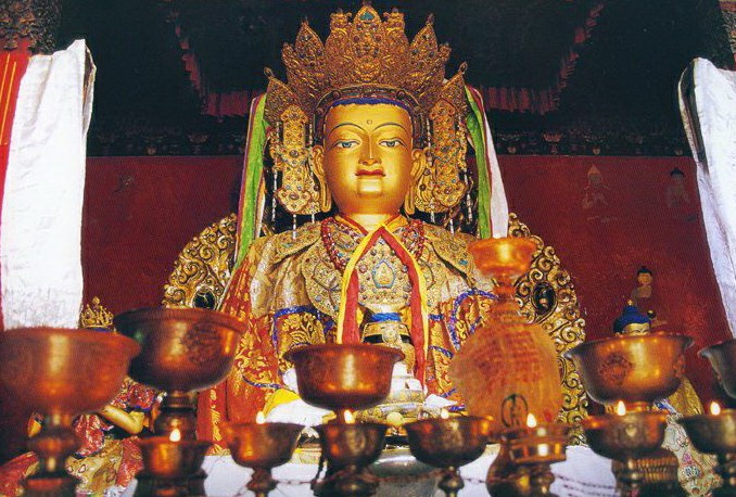 公元641年,“唐王以釋迦佛像,珍寶,金玉書(shū)櫥,三百六十卷經(jīng)典,各種金玉飾物作為(文成)公主的嫁奩。又給……卜筮經(jīng)典三百種,識(shí)別善惡的明簽,營(yíng)造與工技著作六十種,……以車(chē)載釋迦佛像,以大隊(duì)騾馬載珍寶、綢帛、衣服及日常必需用具(入吐蕃)。”在文成公主進(jìn)藏之前的公元634年,版權(quán)所有山東聊城聊之旅國(guó)際旅行社有限公司,轉(zhuǎn)載必究!泥婆羅(尼泊爾)國(guó)王鴦?shì)敺ツσ呀?jīng)將其女尺尊公主嫁給松贊干布,尺尊公主入藏時(shí)亦隨帶著一尊釋迦牟尼像,大乘佛教的經(jīng)典著作,各種精巧的工藝品和工匠等等。文成公主進(jìn)藏后不久,就協(xié)助尺尊公主修建了大昭寺,“與此同時(shí),也從中原召來(lái)了很多良工巧匠修建惹謨伽神變寺。