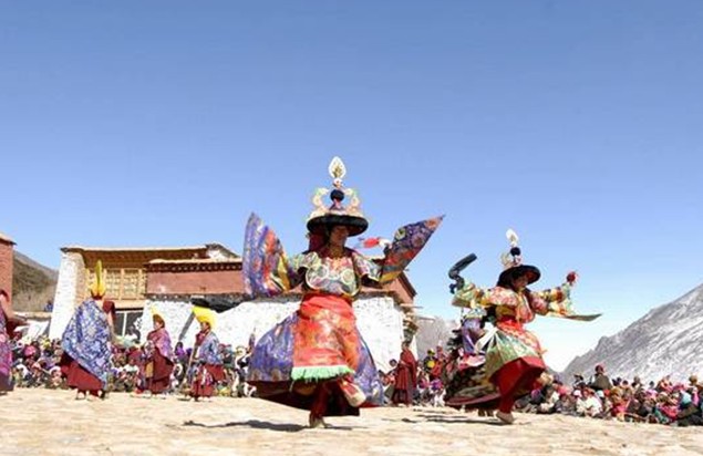 作為藏北重要的旅游勝地,熱振寺還有一些非同一般的“看點(diǎn)”,不可錯(cuò)過(guò)。如每年藏歷4月15日的“迎鳥(niǎo)節(jié)”和7月15日的“帕邦唐廓節(jié)”。“帕邦唐廓節(jié)”最初只是純宗教性的轉(zhuǎn)經(jīng)活動(dòng),后來(lái)逐漸發(fā)展成為除宗教活動(dòng)外,農(nóng)牧民進(jìn)行各類(lèi)商品交換,開(kāi)展文娛活動(dòng)的綜合性節(jié)日。“迎鳥(niǎo)節(jié)”是根據(jù)熱振寺當(dāng)?shù)氐臍夂驐l件決定的,每當(dāng)舉行杜鵑鳥(niǎo)供奉日時(shí),僧人達(dá)百余人,敬獻(xiàn)供品若干,并且還要舉行隆重跳神活動(dòng),以求賜福。