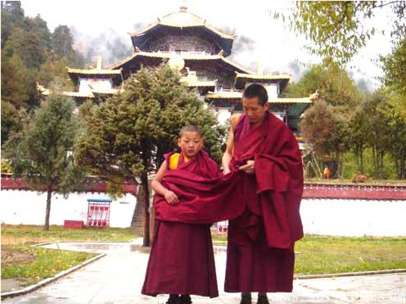 熱振寺的組織機(jī)構(gòu)與其他格魯派寺廟不同的是未設(shè)扎倉(cāng)和康村,寺內(nèi)一切政教大權(quán)均掌握在熱振活佛手中。熱振活佛之下設(shè)堪布1人,主要代理熱振活佛掌管全寺的政教事務(wù),任期不定;堪布之下設(shè)吉米1人,主要掌管全寺財(cái)政開(kāi)支,任期三至四年;吉米之下設(shè)格貴1人,主要監(jiān)督管理全寺僧眾的戒律和寺規(guī)的熱行,有權(quán)處置寺內(nèi)喇嘛,任期一年;格貴之下設(shè)聶巴1人,主管寺廟的錢(qián)糧等財(cái)物,任期三至四年;聶巴之下設(shè)恰瑪1人,主管全寺僧眾放茶等事條,任期不定。熱振喇章又分為熱振寺喇章和拉薩章兩處。熱振活佛之下設(shè)扎薩1人,亦稱(chēng)“達(dá)喇嘛”,此職只有攝玫活佛才有,并受中央敕封任命,主要代替熱振活佛管理兩個(gè)喇章的一切事務(wù)。熱振活佛任“攝政”期間,扎薩隨活佛住拉薩喇章;扎薩之下設(shè)第強(qiáng)5~7人,主要管理喇章中的經(jīng)濟(jì)收支;版權(quán)所有山東聊城聊之旅國(guó)際旅行社有限公司,轉(zhuǎn)載必究!第強(qiáng)之下設(shè)聶巴1人,即喇章的財(cái)產(chǎn)保管員。熱振活佛身邊還設(shè)有索本、森本、曲本各1人,主要管理活佛的起居生活、供品法器、宗教活動(dòng)等。熱振攝政卸任后,則為五品。此外,寺廟及喇章均設(shè)有沖本,主管經(jīng)商,人員不限。熱振活佛任攝政期間,地方政府不供給(配備)馬28匹、隨從35人等。熱振寺剛建寺時(shí)只有十五六個(gè)人,后來(lái)發(fā)展到有扎巴500人,所屬莊園33座、屬寺7座,分別是曲桑寺、甘崗寺、江隆曲定寺、覺(jué)丹寺、桑丹林寺、孜聶寺和羊袞寺。還有3個(gè)牧場(chǎng),即當(dāng)雄的烏瑪牧場(chǎng)、那垅香牧場(chǎng)和果聶牧場(chǎng)。熱振寺的學(xué)經(jīng)制度是以阿底峽的《菩提道燈論》為基礎(chǔ),強(qiáng)調(diào)僧人的戒律,強(qiáng)調(diào)修行次第。修習(xí)的主要經(jīng)典是“噶當(dāng)六論”(即《菩薩地論》、《莊嚴(yán)經(jīng)論》、《集菩薩學(xué)論》),后又增加了“茲氏五論”(即《現(xiàn)觀莊嚴(yán)論》、《莊嚴(yán)經(jīng)論》、《寶性論》、《辨法法性論》、《辨中邊論》)。在該寺改宗格魯派后,仍保留了不少噶當(dāng)派的教理。