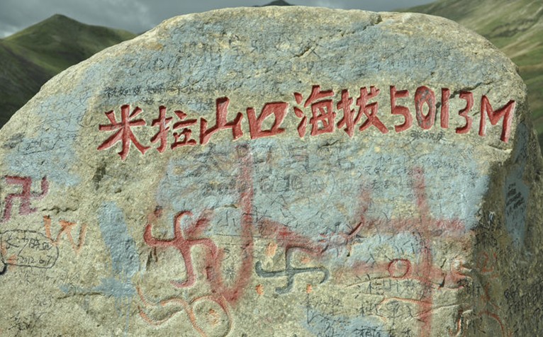 米拉山因其高大雄奇而成為此地藏民心目中的神山,山口上飄撒著許多祭山的經(jīng)幡和印有經(jīng)文的紙條,但在山口的最高處,矗立著一座標(biāo)有“雪域之舟”的西藏耗牛石雕像,石雕的底座格外醒目地刻著一行紅色大字“福建泉州市援建”。在藍(lán)天白云下,這座雕像是那樣顯眼,它是米拉山惟一的標(biāo)志性建筑,它同時也成為米拉山的一個歷史見證,見證著泉州市援藏干部在這里留下的勤勞身影以及和藏族同胞結(jié)下的深厚情誼。