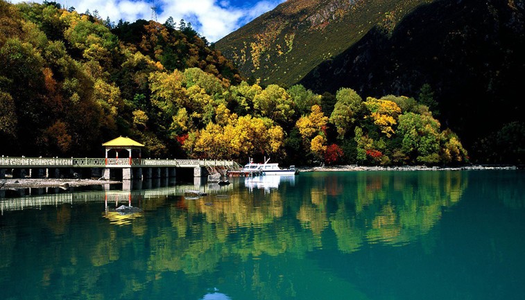 巴松措湖水清澈見(jiàn)底,四周環(huán)繞的雪山倒映其中。沙鷗、白鶴浮游湖面,湖水透明可見(jiàn)游魚(yú)如織,情趣怏然。每到春季,湖四周群花爛漫,雪峰陣列并倒影湖中,景色宜人至極。秋季萬(wàn)山紅遍,層林盡染,天空碧藍(lán)如洗,火紅的楓葉折射燦爛的陽(yáng)光,倒影在碧藍(lán)的湖面,景色美不勝收。距岸邊大約一百米處有一座小島名為扎西島,版權(quán)所有山東聊城聊之旅國(guó)際旅行社有限公司,轉(zhuǎn)載必究!傳說(shuō)該島是“空心島”,即島與湖底是不相連而漂浮在湖水上的。雖然只是個(gè)傳說(shuō),卻讓人覺(jué)得蔚為神奇,你到島上也不妨試試在島的某些地方跺跺腳,看是否有空心的感覺(jué)。