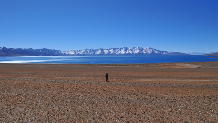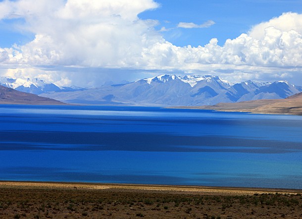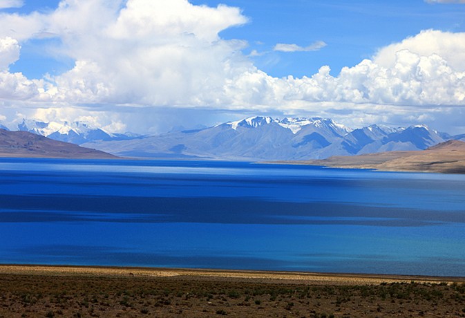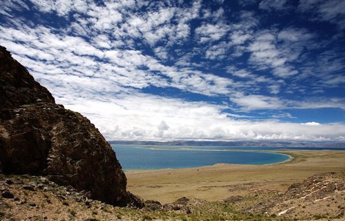 當(dāng)惹雍措是藏北著名神湖,它位于那曲地區(qū)的一個深陷的湖盆底部,它與當(dāng)惹雍措相毗鄰。當(dāng)惹雍措湖面形似一金剛杵,上圓中細(xì)下部長,四面群山環(huán)抱,南面的達(dá)爾果山山頂積雪終年不化。實(shí)際上當(dāng)窮措與當(dāng)惹雍措是在同一個湖盆之內(nèi),湖水未枯以前本是同一湖泊。這正是當(dāng)窮措名字的來歷,藏語里當(dāng)窮措即小的當(dāng)惹雍措之意。據(jù)說此湖在一天之中能變換三種顏色。湖東岸是連綿不斷、屏風(fēng)般矗立的褚紅色山壁,它們清晰地記錄了當(dāng)惹雍措湖水一次次下降的歷史。被湖水沖刷而成的階梯從湖畔山頂一圈又一圈地一直環(huán)繞到湖濱。