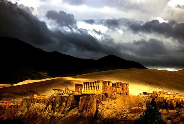 為了便于統(tǒng)治,拉加里王系的統(tǒng)治者在今天曲松縣縣城南側(cè)的高臺地北緣修筑了新的拉加里王府宮殿。王宮北臨河谷,遠(yuǎn)遠(yuǎn)看去仿佛就高置于山頂。大概王族都有居高臨下的習(xí)俗,從雅礱時(shí)期的雍布拉康到吐蕃時(shí)期的布達(dá)拉宮再到現(xiàn)在我們看到的拉加里王宮,無不體現(xiàn)出王者君臨天下受萬人敬仰的氣勢。