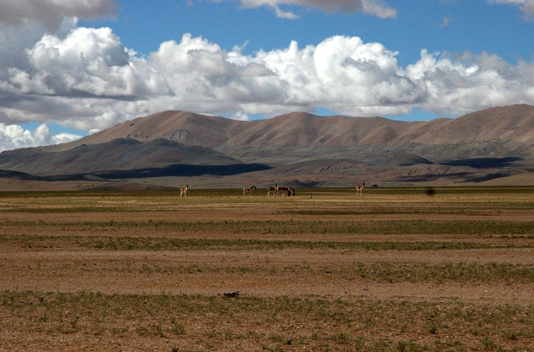 這里有野生動(dòng)物樂園之美譽(yù),棲息著許多野生動(dòng)物。有野牦牛、藏羚羊、藏野驢、黑頸鶴、盤羊、巖羊、黃羊、黃白鴨、猞猁、雪雞、高原免、狐貍、狼、旱獺、巖鴿等。數(shù)量最多的數(shù)藏羚羊、野驢、黃羊等。