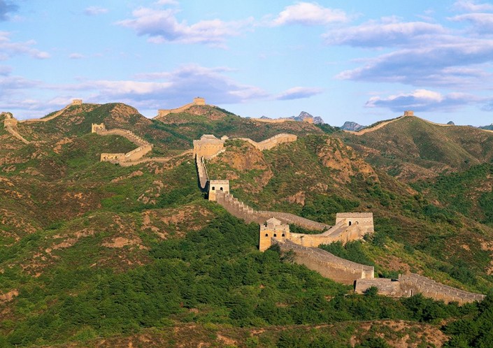 約公元前220年,一統(tǒng)天下的秦始皇,將修建于早些時候的一些斷續(xù)的防御工事連接成一個完整的防御系統(tǒng),用以抵抗來自北方的侵略。在明代(公元1368~1644年),又繼續(xù)加以修筑,使長城成為世界上最長的軍事設施。在文化藝術(shù)上的價值,足以與其在歷史和戰(zhàn)略上的重要性相媲美。