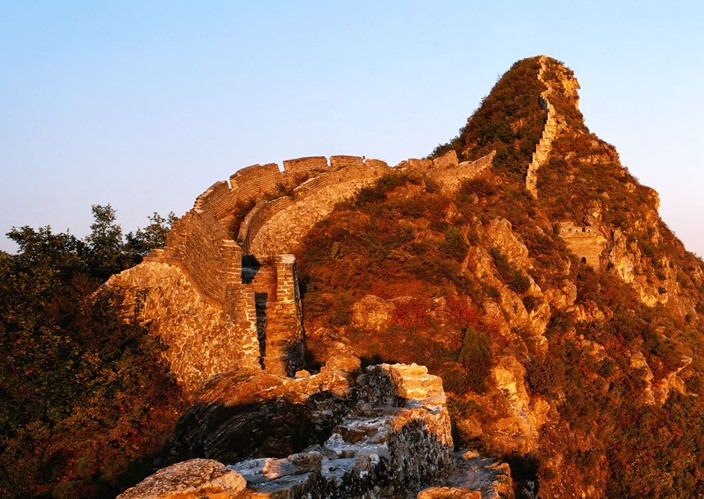 金山嶺長城位于距北京市區(qū)140公里密云縣與河北灤平縣交界的燕山山脈中。西起龍峪口,東止望京樓,全線10.5公里。沿線有建筑各異的敵摟67座,烽火臺2座,大小關(guān)隘5處,這里長城上敵樓密集,一般50-100米一座,墻體以巨石為基,高5-8米,并設有攔馬墻、垛墻和障墻,形式多樣,各具特色。被譽為“萬里長城,金山獨秀”。