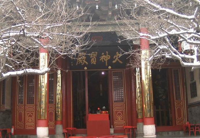 進入火神廟正門,北側為二道門,里面坐北朝南就是火神廟的主體建筑 真君寶殿,面闊三間,進深四間,建筑面積105平方米。內(nèi)塑火神真君像,開路神方弼及顯路神方相分站左右。
