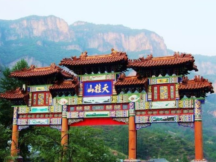 這里峰險、石奇、洞幽、泉多、林木繁茂、云霧繚繞。山上古建原為崇禎皇帝歸隱行宮,后改為青龍觀道院,又稱“北武當(dāng)”。建筑群規(guī)模宏大,富麗堂皇,依山就勢,錯落有致。主要人文景 觀有:真武殿、大光明殿、東西 朝房、鐘樓、鼓樓、蒼巖宮、三道靈官閣等三十余處建筑。自然景觀主要有:真武洞、白毛女洞、無底洞、七泉一井、石乳長廊、飛來石門、大小天橋等。天桂山是一處集歷史古建筑和自然風(fēng)光為一體的山岳古剎型風(fēng)景名勝區(qū)。 宮天桂山呈典型的巖溶地貌,融山泉林洞于一體,集雄險奇于一身,頗具廣西桂林山勢之特點,這里四季如春,故有“北方桂林”之稱。山上主要人文景點是青龍觀道院,始建于明末原本為崇禎皇帝的歸隱行宮。除青龍觀之外,還有白毛女洞、真武洞聚仙堂等人文景觀。一九九七年,為慶祝香港回歸,版權(quán)所有山東聊城聊之旅國際旅行社有限公司,轉(zhuǎn)載必究!在天桂山一百多米高的峭壁上,鐫刻了一個巨大的“歸”字,字高97.71米寬49.1米,是世界上最大的漢字。 天桂山原名“三門寨”,因自然風(fēng)光頗具廣西桂林山水神韻才改名。天桂山一帶分布大面積白石灰?guī)r、白云巖、碳酸鹽巖等,這些巖類很容易被水溶蝕,天長日久就形成了喀斯特地貌景觀,以山奇、洞異、水清為特色。抬眼望去,橫立在群山中的天桂山雄渾、壯觀,千余米的主峰直插云端。