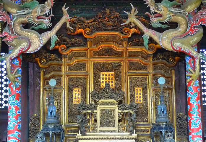 崇政殿:又稱“金鑾殿”,通稱“正殿”,是皇太極處理政務(wù)、接見使臣的場所,清代歷朝皇帝東巡祭祖時也在此聽朝理政。面闊五間,綠剪邊黃琉璃瓦,單檐硬山頂,前后有出廊,圍以石護(hù)欄。殿內(nèi)為徹上明造,和璽彩繪,寶座后有貼金龍扇屏風(fēng),旁為貼金蟠龍柱。殿外庭院左右有飛龍閣、翔鳳閣、東七間樓和西七間樓。