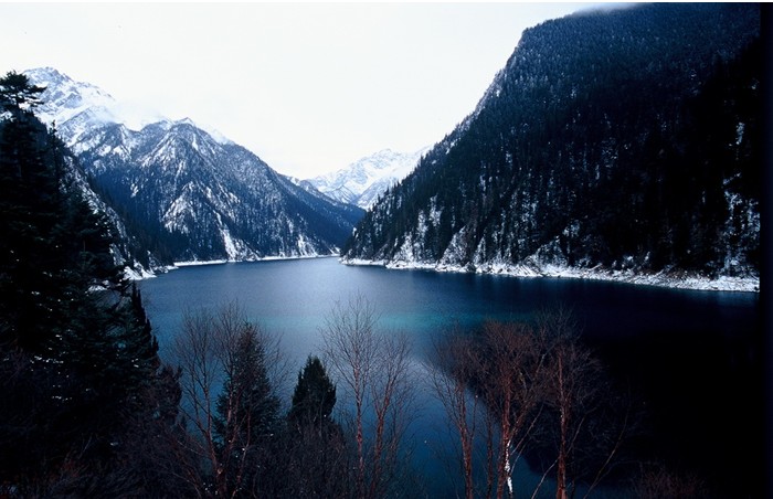 長(zhǎng)海海拔3060米,最高處4457米,面積約200萬平方米。長(zhǎng)約8公里,順山彎去,頭深藏在層巒疊嶂的山谷之中,是九寨溝最大的海子。海子對(duì)面,雪峰皚皚,冰斗、“U”字谷等典型冰川景觀,歷歷在目,岸旁林木葉茂,一眼望去,水似明鏡,巍巍雪峰,沐浴在藍(lán)天白云之中,壯觀奇麗。此湖區(qū)水面大,但無地表出水口,夏秋暴雨,水不溢堤,冬春久旱,亦不干涸。藏胞贊美它是“裝不滿、漏不干的寶葫蘆”。隆冬時(shí)節(jié),冰凍厚達(dá)60厘米,傳有怪獸出沒。