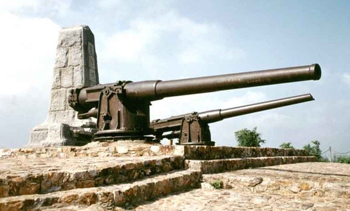 望臺(tái)炮臺(tái)是日俄爭奪旅順的最后戰(zhàn)場。因遺留山上的兩門俄軍殘炮而被當(dāng)?shù)厝朔Q名為“兩桿炮”。這兩桿炮是1899年俄國彼得堡奧卜霍夫鋼鐵廠鑄造的,射程約10千米。1905年元旦,日軍攻占望臺(tái)炮臺(tái),宣告日俄旅順陸戰(zhàn)結(jié)束。
