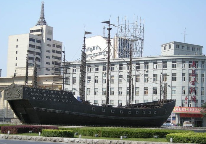 港灣廣場位于大連市中山區(qū)人民路西端的盡頭,是大連港客運(yùn)碼頭前的交通廣場。港灣廣場占地面積1.5萬平方米,其中中心綠地面積5300平方米。廣場中間是銅制的鄭和下西洋的帆船模型,展現(xiàn)了中國古代的航海文明。廣場西北角是大連服裝交易市場和大連古玩交易市場。港灣廣場建設(shè)至今經(jīng)過了多次改造。