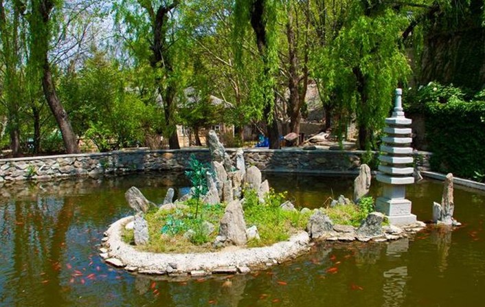 位于大黑山西北麓,是大連地區(qū)著名的道教廟宇,又稱響水寺、韻水寺。相傳建于唐代,后世特別是清代曾多次重修。響水觀依山而建,為歇山或二層磚砌飛檐結構,山門配以赭紅色垣墻,再加上門外一道坡度較大的臺階,使廟宇顯得巍峨莊嚴。 響水觀分南北兩院,進山門即是正殿后土殿。這是一座近十米高的硬山式三楹出廈殿堂,青磚灰瓦,雕梁畫棟,富麗堂皇。殿內供奉著后土、女蝸、觀音等神圣。殿前院內有池塘和五棵合抱粗的大樹,清水綠蔭,滿院生涼。北院有精舍數(shù)椽,紅色木柱木棱花窗,幽靜古樸,是道士們的住處和客舍。 響水觀正殿右側有一個40米深的天然洞穴,叫做瑤琴洞,洞內有清泉一泓流出,潺潺作響。泉水流出后,自南而北從嵌在寺外壁上的龍口中瀉下,版權所有山東聊城聊之旅國際旅行社有限公司,轉載必究!激至蹲伏于水塘中的碧蟾口中,嘩嘩作響,飛傳山谷,故名“響水觀”。