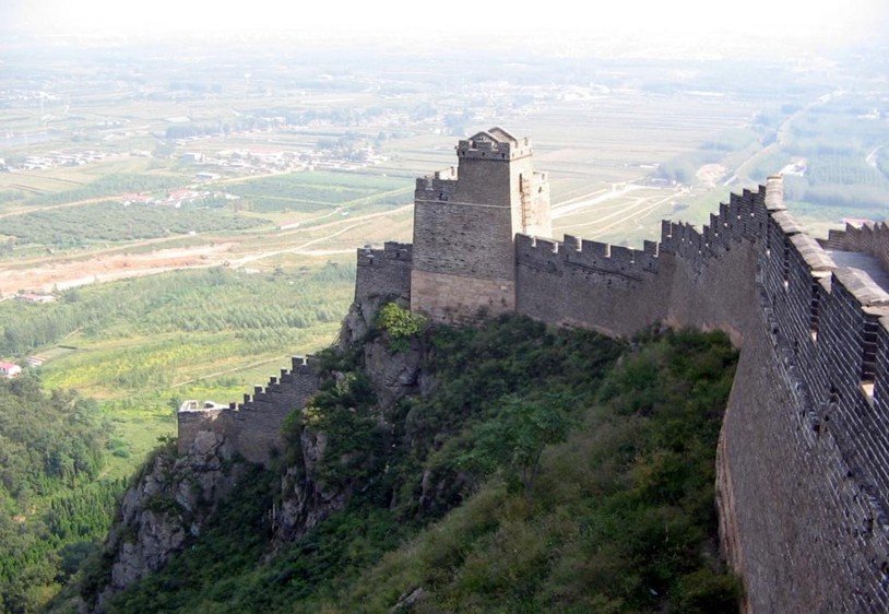 角山景區(qū)集山、城、寺為一體。大門是仿明代城堡建筑形式設(shè)計的。其造型像個“山字”。正額“角山長城”匾是原國務(wù)院副總理、中國長城學(xué)會會長黃華題寫的,背額“碧海峰”匾為當(dāng)代詩人賀敬之的手筆。有詩云:“自古盡道關(guān)城險,天險要隘在角山,長城倒掛高峰上,俯瞰關(guān)城在眼前。”足以證明角山的險要。角山長城是明朝遼東鎮(zhèn)和薊鎮(zhèn)兩座軍事重鎮(zhèn)的界線,建有敵臺、戰(zhàn)臺5座,關(guān)隘一座。站在角山最高峰大平頂上,極目遠(yuǎn)眺,令人遙想到當(dāng)年古戰(zhàn)場上戰(zhàn)鼓齊鳴、刀光劍影的壯闊場面。