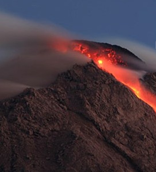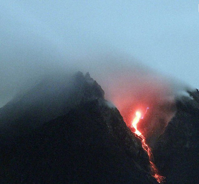 默拉皮火山位于印度尼西亞爪哇島的中部。在日惹東北32公里,海拔2911米,默拉皮意為“不滅之火”,是一個錐形火山,也是印度尼西亞活動性最強的火山,1006年首次爆發(fā),山頂粉碎,毀滅了中爪島的一個王國。埋沒世界七大奇觀之一的婆羅浮屠佛塔。1548年以來又噴發(fā)68次,平均兩三年噴發(fā)一次,每次都有傷亡?;鹕骄嚯x日惹市相當(dāng)近,山麓居住著幾千人,有的村莊在海拔1700米的高處,當(dāng)?shù)鼐用褡裥幸环N古老的儀式,每年都在火山口旁邊牲口供祭,以期安撫默拉皮山的神靈,但死亡依然頻頻降臨。由于其威脅人類居住地的安全,被國際地球化學(xué)和火山學(xué)協(xié)會列為應(yīng)當(dāng)加強監(jiān)督與研究的全球16座火山之一。