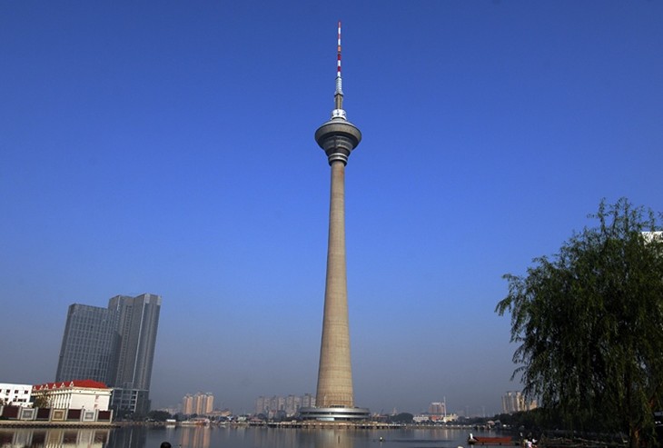 天津廣播電視塔簡稱“天塔”,位于天津西南,四周是 210,000 平方米的湖。“天塔”以水上天塔而著稱。“天塔”高為 415 米。在塔的 248 米和 278 米之間是一個七層的飛碟型的建筑。飛碟結(jié)構(gòu)的總面積為 4,500 平方米。除了廣播間和電力間(260m-378m)之外,還有三層覆蓋了大約 1,300 平方米的面積。第一層中是仙客來餐廳(248 米),這里提供中餐、宴會服務(wù)和卡拉OK 包間??赏瑫r容納 100 人。