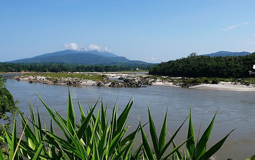 敏宋北距密支那43公里,又叫“三江口”,是恩梅開江和邁立開江的匯合處。敏宋是伊江的神來之筆,是克欽邦的精典景點。站在碩大的白體金塔前的草亭內(nèi),江風(fēng)習(xí)習(xí),俯瞰壯麗的三江口,頓覺胸襟開闊,思緒萬千。東邊那條叫恩梅開江,西邊這條就是邁立開江,兩江之間礁峭石奇,江水奔涌,在巨大的魚嘴石處交匯,合二為一,浩蕩南行,氣勢如虹。恩梅開江發(fā)源于西藏察隅縣境內(nèi),藏語叫“美爾東曲”;南下入云南怒江州貢山縣境后稱獨龍江;進入克欽邦后更名為恩梅開江。邁立開江源自中緬邊境的大雪山南麓,其東邊是江心坡,西邊是枯門嶺。這兩條江的性格一陰一陽,一剛一柔,陰陽結(jié)合后,便成了緬甸的“天惠