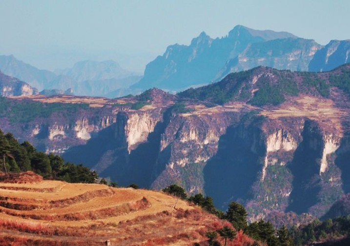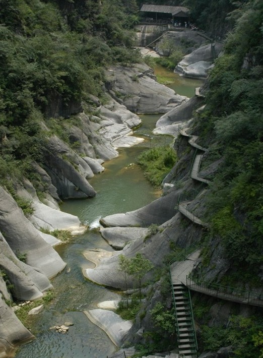 《太平御覽》講:“抱犢山,在上黨東南,高七十丈。” 《隋圖經(jīng)》則說:“抱犢山四面危絕。”公元4世紀(jì)初時(shí),我國(guó)兩晉時(shí)期著名的道教神學(xué)奠基人葛洪(自號(hào)抱撲子)曾遍游天下名山。他對(duì)太行懷抱中的抱犢山評(píng)價(jià)甚高,以為“稱天下名者,南有武夷,北有抱犢。”把紫團(tuán)山與武夷山相提并論,這對(duì)當(dāng)代人來(lái)講,無(wú)論如何是無(wú)法想象的事情。因?yàn)榻裉斓淖蠄F(tuán)山其名聲不但已遠(yuǎn)不如聲名顯赫的南國(guó)武夷,僅以武夷九曲溪那樣秀麗可人且可乘舟游弋的水景而言,即使走遍今日太行峽谷中的每個(gè)角落,恐怕也難以覓得一處了。然而,再把話說回來(lái),你如果真是一個(gè)對(duì)紫團(tuán)山的歷史有所了解的人,特別是對(duì)它的地形地貌做過實(shí)地踏勘的人,你則會(huì)毫無(wú)猶疑的確信,確信葛洪在1500余年前所說的那一番話不但語(yǔ)出事實(shí),而且語(yǔ)焉甚確,毫無(wú)夸張?,F(xiàn)在武夷九曲溪水及其所經(jīng)山峽長(zhǎng)度約近8公里,歷史上可能更要綿長(zhǎng)些;但紫團(tuán)山峽中的河床谷地其長(zhǎng)度絕不在20公里以下。根據(jù)歷史上遺存地貌的觀察分析,古代武夷九曲溪和紫團(tuán)山峽流景觀的主要區(qū)別應(yīng)該在于,武夷九曲溪河谷趨于平緩開闊,而紫團(tuán)峽流由于峽身緊束,區(qū)段落差極大,所以后者比前者肯定會(huì)流速迅疾,景色險(xiǎn)奇而壯觀。在溪流盤曲環(huán)繞、岸側(cè)景色變幻無(wú)窮這一點(diǎn)上,兩處名勝則是相似相近的。