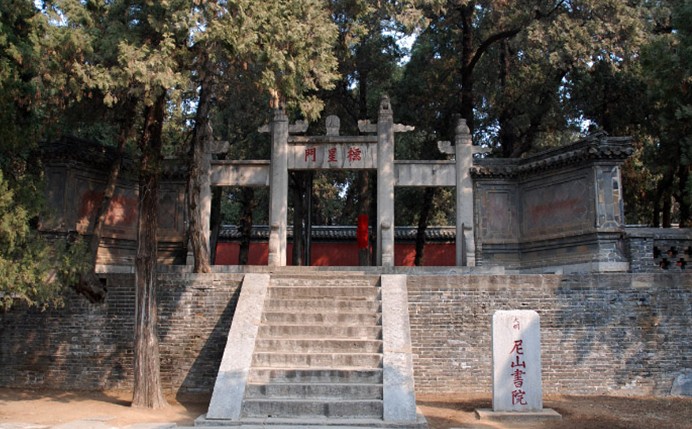 尼山書院,位于山東曲阜縣城東南30公里處的尼山原名尼邱山,因避孔子諱而改名為尼山。海拔340余米,山頂五峰連峙,惟中峰為尼丘。據(jù)《史記》記載:孔子父母“禱于尼丘而得孔子”,故尼山名揚遐邇。這里,中峰東麓有孔子廟和尼山書院等建筑物;另有五老峰、魯源林、智源溪、坤靈洞、觀川亭、中和壑、文德林、白云洞等所謂“尼山八景”。
