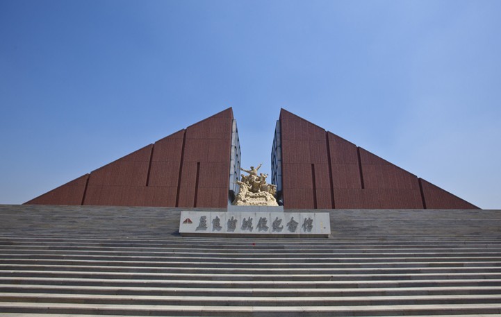 位于孟良崮旅游區(qū)內(nèi)孟良崮山頂,占地面積5000平方米,建筑面積100平方米,1984年為紀念著名的“孟良崮戰(zhàn)役”而建。版權所有山東聊城聊之旅國際旅行社有限公司,轉(zhuǎn)載必究!紀念碑碑高30米,由三塊狀如刺刀的灰色花崗石筑成,象征著野戰(zhàn)軍、地方軍和民兵的武裝力量體制。底座為邊長20米、高1.6米的正三棱體,組成一個槍托,象征著槍桿子里面出政權。槍托的周圍是紅色圍墻,象征著高山下的花環(huán)。紀念碑的上下部構成一個有機的整體,象征著軍民團結(jié)必勝,人民戰(zhàn)爭必勝。碑中部正面鐫刻著胡耀邦同志親筆題寫的“孟良崮戰(zhàn)役紀念碑”八個鎦金大字,碑東面鐫刻著陳毅元帥《蔣軍必敗》詩詞和粟裕將軍的題詞,碑西鐫刻著劉少奇、朱德、葉劍英等老一輩無產(chǎn)階級革命家的題詞。