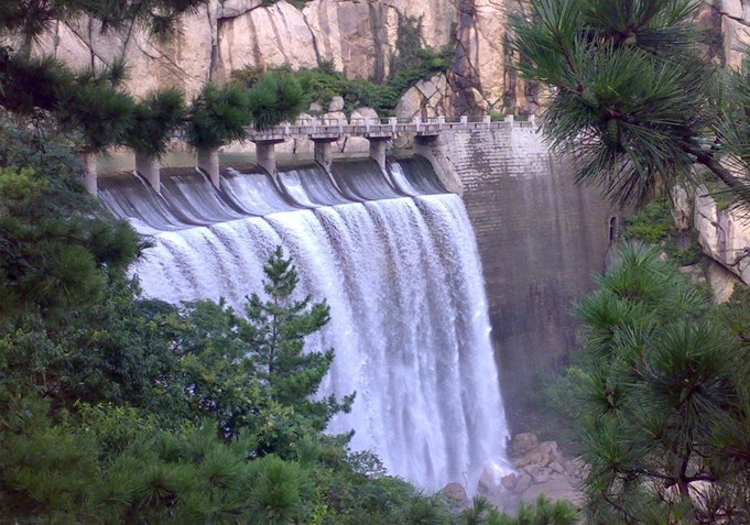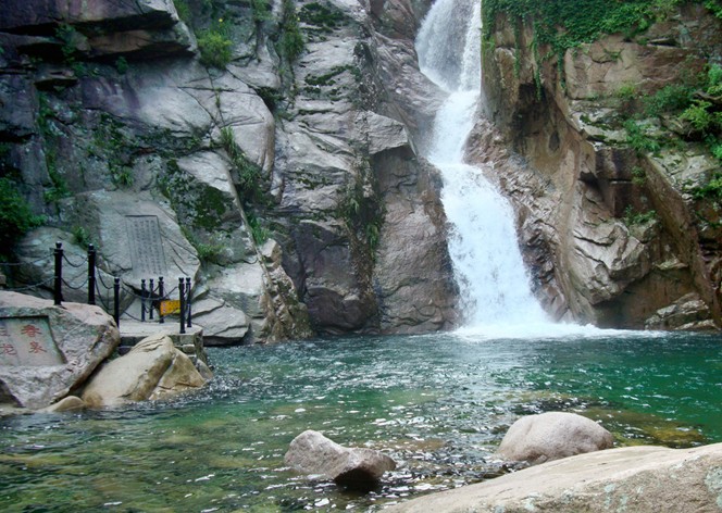 又稱玉龍瀑。在嶗山南部八水河中游,北距上清宮約1公里。周圍巖壁峭立,八水河至此,沿20米高、10余米寬的絕壁懸空倒瀉,噴珠飛雪,狀如玉龍飛舞。瀑布落下十幾米,與石壁相擊,分?jǐn)?shù)股跌入潭中。碧水凝寒,清澈見底,潭旁巨石上鐫“龍?zhí)镀佟比?。大雨過后,山洪暴注,飛騰叫嘯,更為壯觀,故有“龍?zhí)秶娪辍敝Q。